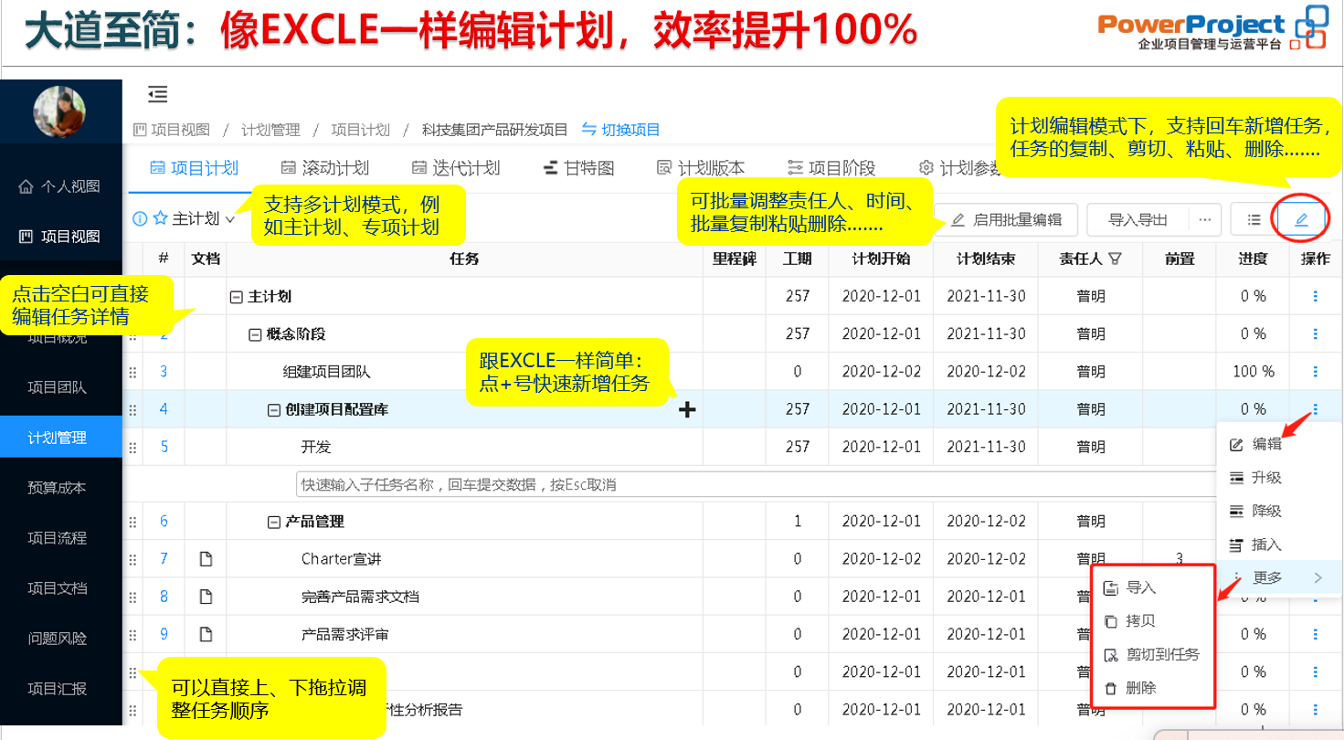 公司是由一个个具体的项目业务组成:产品研发项目、IT信息化项目、厂房建造项目、生产线改造项目、投资项目……都是项目。